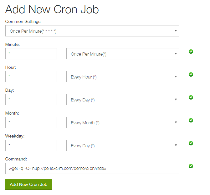 wget -q -O- wget -q -O- http://yourdomain.com/crm/cron/index